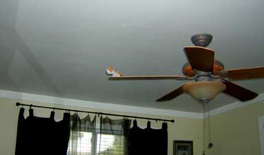 They have daring and dangerous adventures even when they are not supposed to be up on the ceiling fans. |